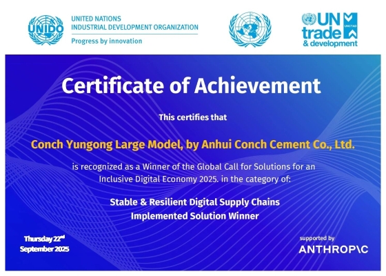 近日,海螺集團下屬“安徽海螺水泥股份有限公司——海螺云工大模型”在聯合國工業(yè)發(fā)展組織等機構于2025年7月發(fā)起...